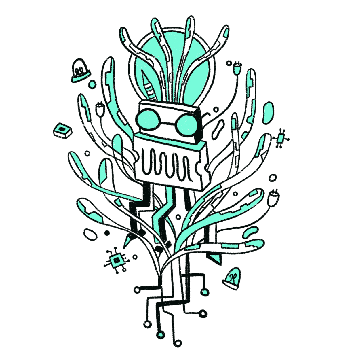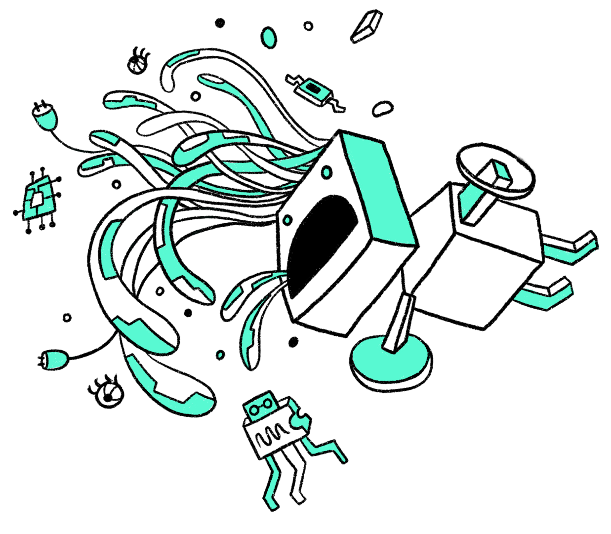 Our branding this year was created by Enna Kim, who worked with us to create our 2024 logo as well as a series of characters. We love the playful nature of the loombot, the googly-eyed integrated circuit (which you can get embroidered on a hat as a ticket add-on!), and the tangles of wires that we think reflect what we’re trying to pull off for OHS2024. We want the Summit to be engaging, intriguing, full of surprises, and chock full of radical, new ideas.