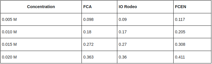 We measured the absorbance of the calibration dilutions with the three colorimeters.